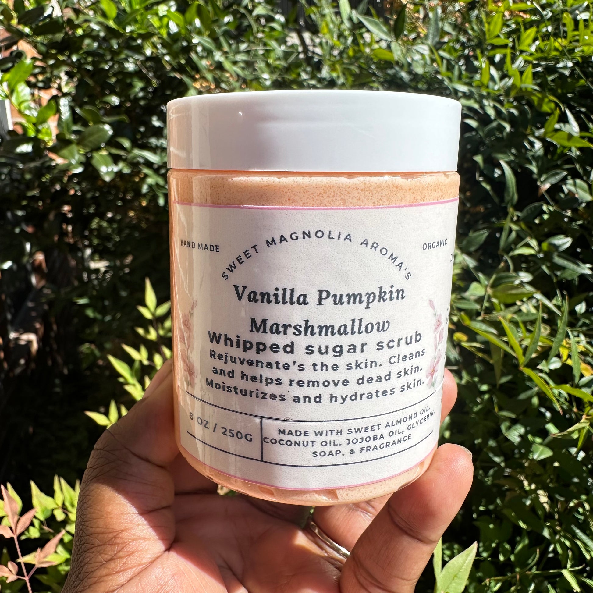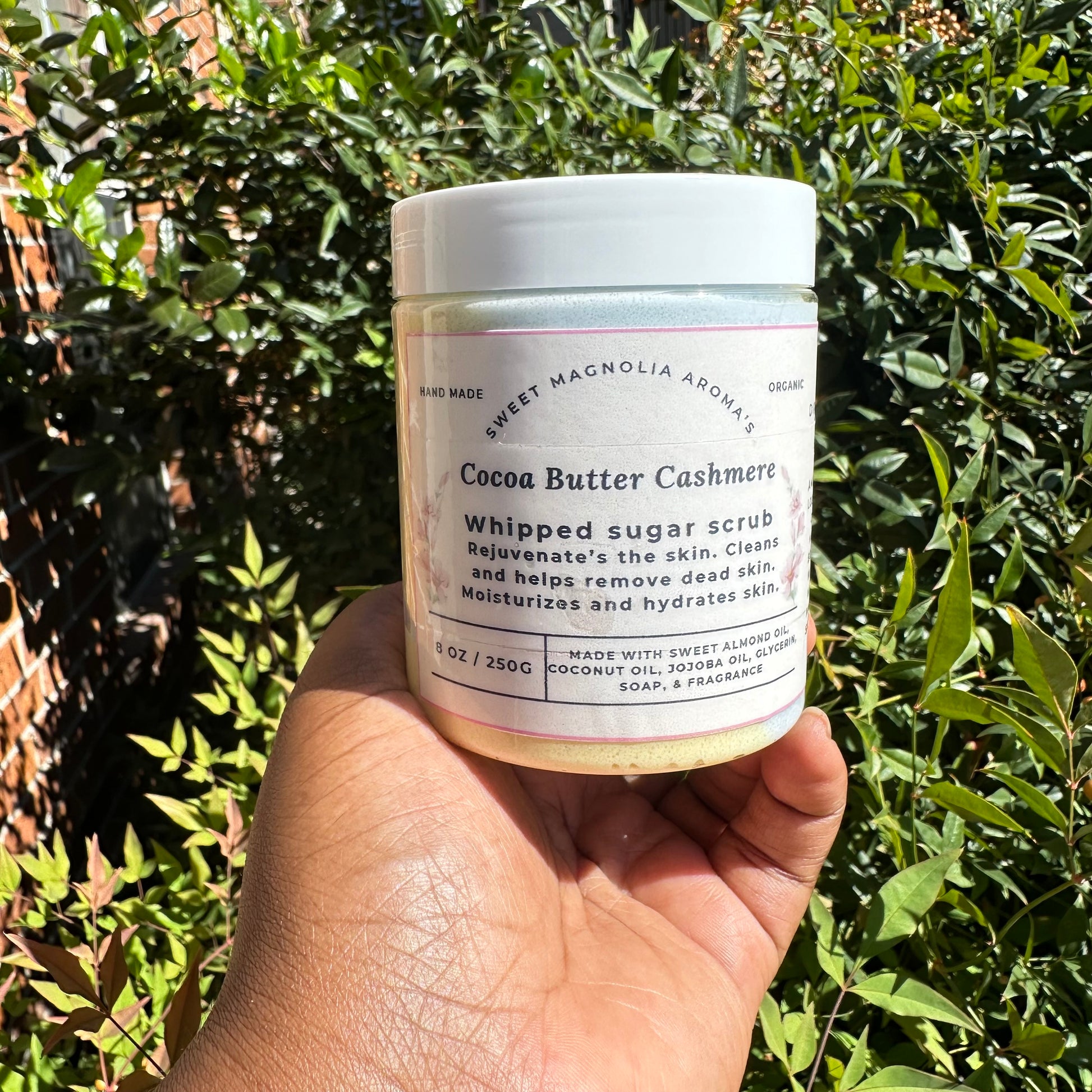 "Experience the ultimate in skin pampering with our whipped sugar scrub. This luxurious blend combines the gentle exfoliation of fine sugar crystals with the creamy texture of whipped shea butter and nourishing oils. Perfect for sloughing away dead skin cells, it leaves your skin feeling incredibly soft, smooth, and hydrated. Infused with delightful fragrances, our whipped sugar scrub transforms your skincare routine into a spa-like indulgence, providing a radiant glow and a touch of luxury with every use."